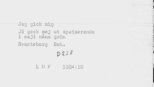 //// Jag gick mig ! //// Jä geck mej ut spatserande //// i maji måna grön ! //// a //// Svarteborg Boh. : //// [ //// L U F 1324:10 ////