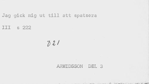 //// Jag gick mig ut till att spatsera //// III s 222 //// ARWIDSSON DEL 3 ////