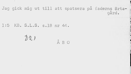 //// Jag gick mig ut till att spatsera på faderns örta- //// gård. //// 1:5 KB. S.L.S. s.18 nr 44. //// A B O ////