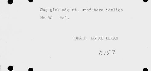 //// Uag gick mig ut, utaf bara ideliga //// Nr 8 O Me 1. //// DRAKE MS KB LEKAR //// * //// * - //// + ////