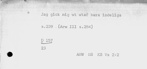 //// . - //// ' - //// - * , . * * . i- .* . * ^ . . - - - -. - - //// .- - //// \. - . //// Jag gick mig ut utaf bara indeliga //// s.239 . (Arw III s.284) //// D__157 //// 23 //// ^ ARW MS KB Vs 2:2 ////
