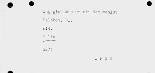 //// Jag gick mig ut uti det beslut //// Dalskog, Dl. //// sl4. //// D 114 //// 5371 ////