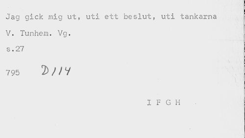 //// Jag gick mig ut, uti ett beslut, uti tankarna //// V. lunhem. Vg. //// s.27 //// 795 //// I F G H //// < ////