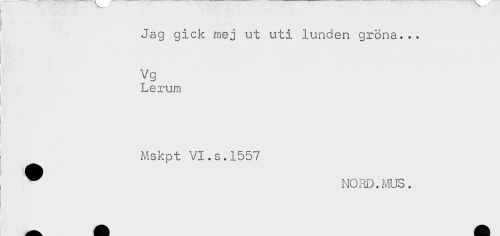 //// r //// Jag gick mej ut uti lunden gröna... //// Vg //// Lerum //// , Mskpt VI.s.1557 //// NORD.MUS. ////