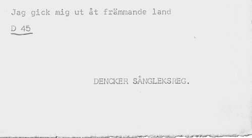 //// Jag gick mig ut åt främmande land //// D 45 //// DENCKER SÅNGLEKSREG. ////