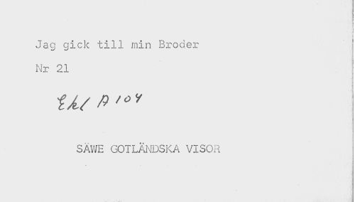 //// Jag gick till min Broder //// Nr 21 //// SÅWE GOTLÄNDSKA VISOR ////