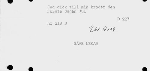 //// Jag gick till min broder den //// Första dagen Jul //// D 227 //// nr 218 B //// SÄVE LEKAR ////