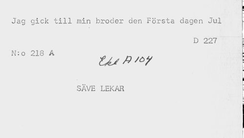 //// H //// Jag gick till min broder den Första dagen Jul //// D 227 g //// N:o 218 A t //// SÄVE LEKAR ! //// L //// t— //// & //// < ////