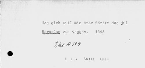 //// i < //// ! //// Jag gick till min bror förste dag jul //// Barnsånp vid vaggan. 1843 //// i . . //// L U B SKILL UNIK ////
