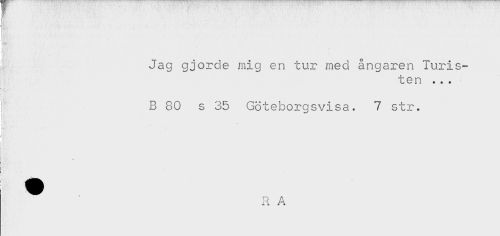 //// HB?! //// < ' //// - ' ' ' . * //// - Jag gjorde mig en tur med ångaren Turis- //// ten . . . //// B 80 s 35 Göteborgsvisa. 7 str. //// t-' //// i //// ! - . //// . ... //// - //// r //// R A ////