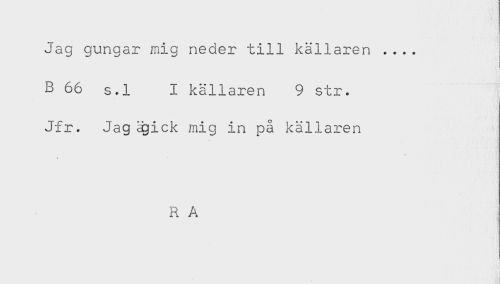 //// Jag gungar mig neder till källaren .... //// B 66 s.l I källaren 9 str. //// Jfr. Jag ^gick mig in på källaren //// R A //// ) ////
