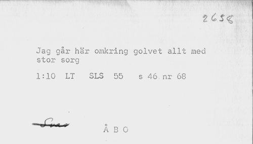 //// Jag går här omkring golvet allt med //// stor sorg //// 1:10 LI SLS 55 s 46.nr 68 //// W: //// " ' ' '' ÅBO ////