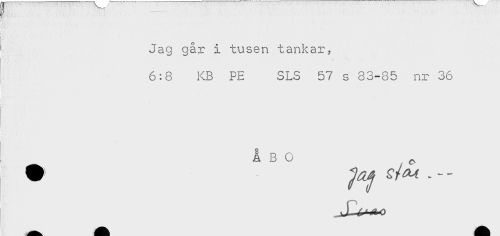 //// * Jag går i tusen tankar? //// i //// 6:8 KB PE SLS 57 s 83-85 nr 36 //// ÅBO ^ ////