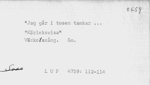 //// .-'i A //// "Jag går i tusen tankar ... //// j //// "Kärleksvisa" //// VäckeZssång. Sm. //// —L U F 4759: 112-114 //// . ////
