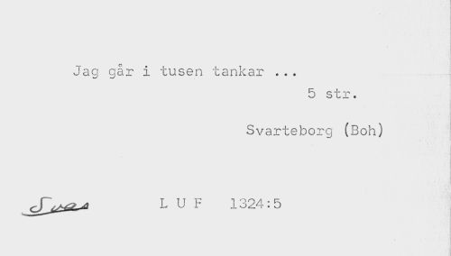 //// Jag går i tusen tankar ... //// 5 str. //// . //// Svarteborg (Roh) //// * //// L U F 1324:5 ////