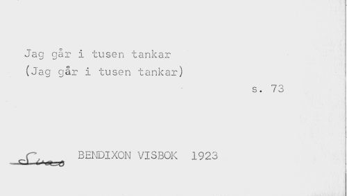 //// Jag går i tusen tankar //// (Jag går i tusen tankar) //// s. 73 //// rG-j^j VISBOK 1923 ////