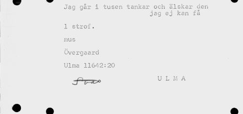 //// jag gar i cusen uanitar oca aib^ar oen //// jag ej kan få //// 1 strof, //// mus //// Overgaard //// Ulma 11642:20 ////