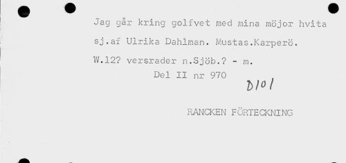 //// Jag går kring golfvet med mina möjor hvita //// sj.af Ulrika Dahlman. Mustas.Karperö. //// VJ.12? versrader n.Sjöb.? - m. //// Del II nr 970 //// / //// RANCKEN FÖRTECKNING ////