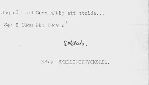 //// Jag går med Guds hjäåp att strida... //// Se: E 1848 kk; 1849 c^ //// KB:s SKILLINGTRYCKSREG. ////