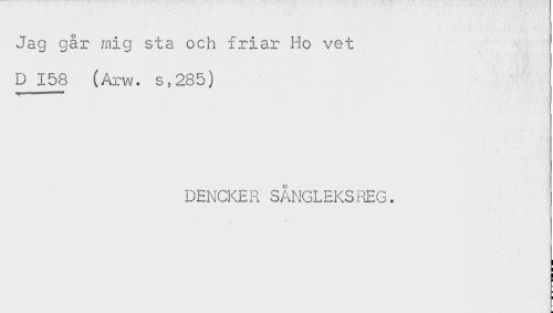 //// Jag går mig sta och friar Ho vet //// D 158 (Arw. s,285) //// DENCKER SÅNGLEKSREG. ////