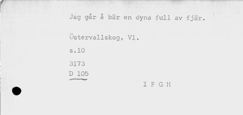 //// ....... //// Jag går å bär en dyna full av fjär. //// . //// r* //// -- //// Ostervallskog ? VI. //// s. 10 //// ! //// ; 3173 //// D 105 //// i _ //// i I F G H //// - ////