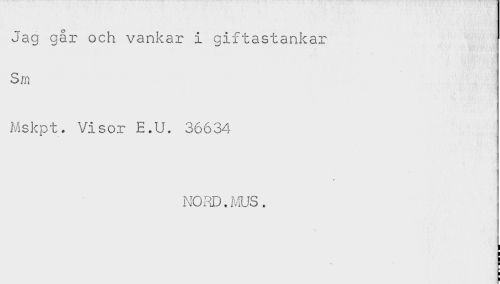 //// Jag går och vankar i giftastankar //// Sm //// Mskpt. Visor E.U. 36634 //// ! //// NORD.MUS. ////