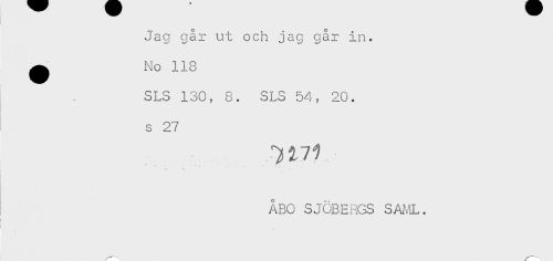 //// Jag går ut och jag går in. //// ^ No 118 //// SLS 130, 8. SLS 54, 20. //// s 27 //// ^ '-. . . - - fj //// * //// ÅBO SJÖBERGS S^'!L. ////