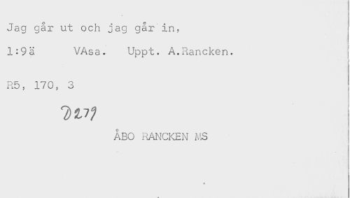 //// Jag går ut och jag går in, //// 1:9 a VAsa. Uppt. A.Rancken. //// R5, 170, 3 //// ÅBO RANCKEN MS //// # ////