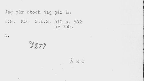 //// Jag går utoch jag går in //// 1:8. KO. S.L.S. 512 s. 682 //// nr 355. : //// N. ! //// ÅBO ////