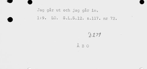 //// Jag går ut och jag går in, //// ^ 1:9. LC. S.L.S.12. s.117. nr 72. //// ÅBO ////