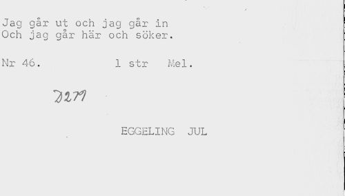 //// Jag går ut och jag går in //// Och jag går här och söker. //// Nr 46. 1 str Mel. //// EGGELING JUL ////