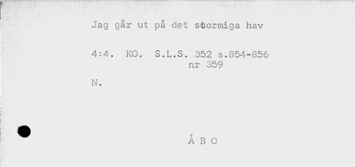 //// Jag går ut på det stbormiga hav //// 4:4. KO. S.L.S. 352 s.854-856 //// nr 359 //// N. //// ^ ÅBO //// ! ! //// I ////