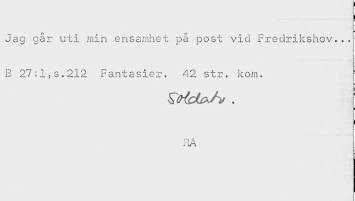 //// Jag går uti min ensamhet på post vid Fredrikshov...= //// B 27:l,s.212 Fantasier. 42 str. kom. //// i //// RA ////
