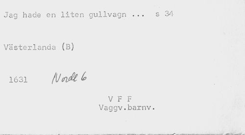 //// Jag hade en liten gullvagn ... s 34 //// Västerlanda (B) //// 1631 ^ //// V F F //// Vaggv.barnv. ////