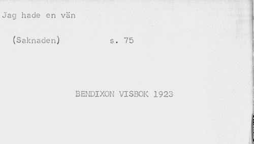 //// Jag hade en vän //// (Saknaden) s. 75 //// BENDIXON VISBOK 1923 ////