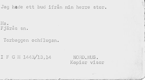 //// Jag hade ett bud ifrån min herre stor. ^ //// < //// Ha. i //// --t . H. O //// irjaras sn. ! //// < //// Torbaggen ochflugan. //// ' '."< ^ t //// I F G H 1443/13,14 NORD.AiLJS. //// Kopior visor //// ^ ____.___^............— —^_____-_______-___ ////