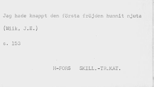 //// Jag hade knappt den första fröjden hunnit njuta //// (Wiik, J.E.) //// s. 153 //// H-FORS SKILL.-IR.KAT. ////