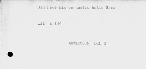 //// Jag hade mig en hustru hette Sara //// -i //// III s 144 //// i .' < //// ARVCDSSON DEL 3 ////