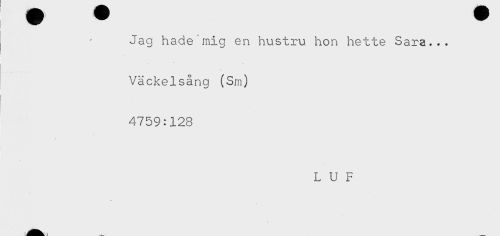 //// Jag hade'mig en hustru hon hette Sara... //// Väckelsång (Sm) //// it //// 4759:128 //// L U F ////