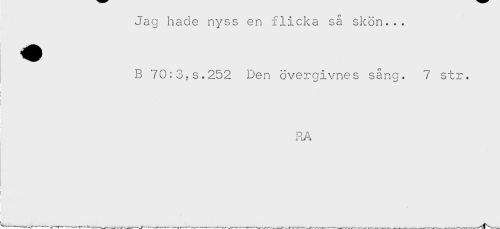 //// Jag hade nyss en flicka så skon... //// B 70:3.s.252 Den övergivnes sång. 7 str. //// i //// i //// RA ////