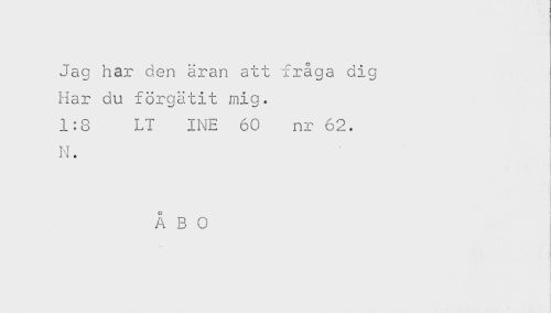 //// Jag har den äran att fråga dig //// Har du förgätit mig. //// 1:8 LT INE 60 nr 62. //// M //// ÅBO ////