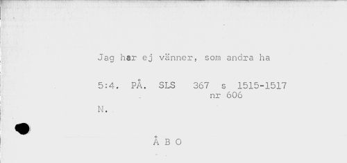 //// f //// * //// Jag har ej vänner? som andra ha //// t //// 5:4. PÅ. SLS 367 s 1515-1517 //// nr 606 //// N. //// i //// ! ////