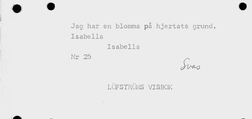 //// ; Jag har en blomma på hjertats grund, //// Isabella //// Isabella //// Nr 25 //// LOFSTRÖMS VISBOK //// / ////