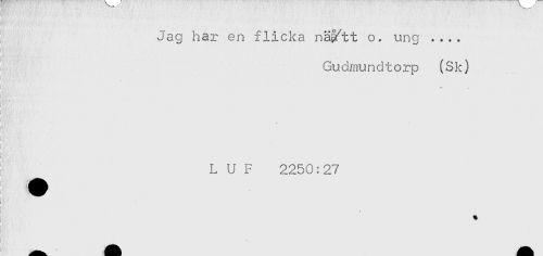 //// ! Jag har en flicka nä^tt o. ung .... //// Gudmundtorp (Sk) //// ! ' * * //// ; L U F 2250:27 ////