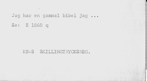 //// Jag har en gammal bibel jag ... //// Se: E 1868 q //// KB:S SKILLINGT RYCKS REG. ////