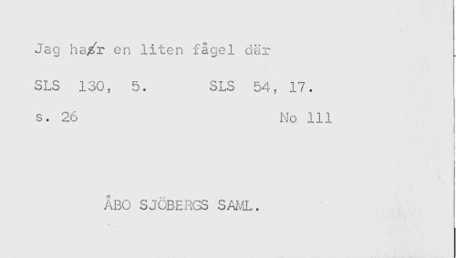 //// Jag ha^r en liten fågel där //// SLS 130, 5. SLS 54, 17. //// s. 26 No 111 //// ÅBO SJÖBERGS SAML. ////