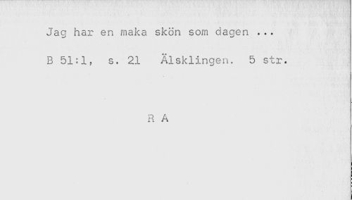 //// Jag har en maka skön som dagen ... //// B 51:1? s. 21 Älsklingen. 5 str. //// R A ////
