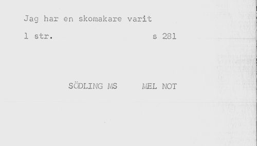 //// Jag har en skomakare varit //// 1 str. s 281 //// SÖDLING MS MEL NOT ////