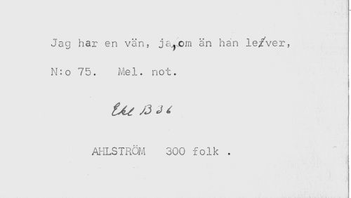 //// Jag har en vän? ja,,cm än han lefver, //// N:o 75. Mel. not. //// AHLSTROM 300 folk . ////