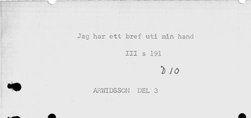 //// Jag har ett bref uti min hand //// III s 191 //// T) 70 //// ^^ ARVJIDSSON DEL 3 ////